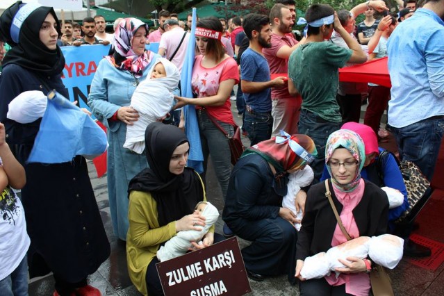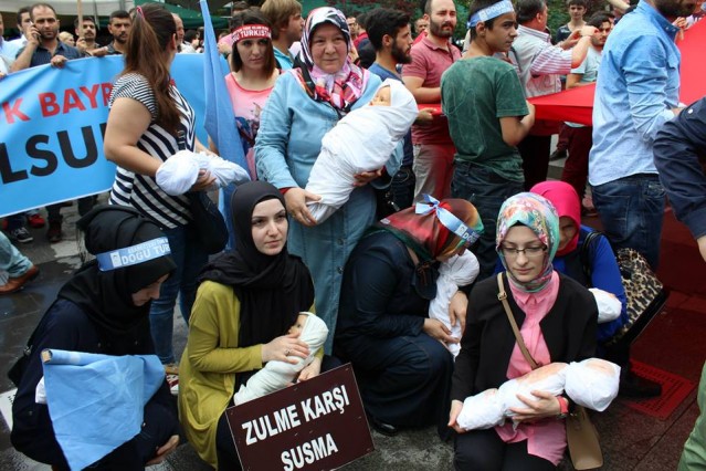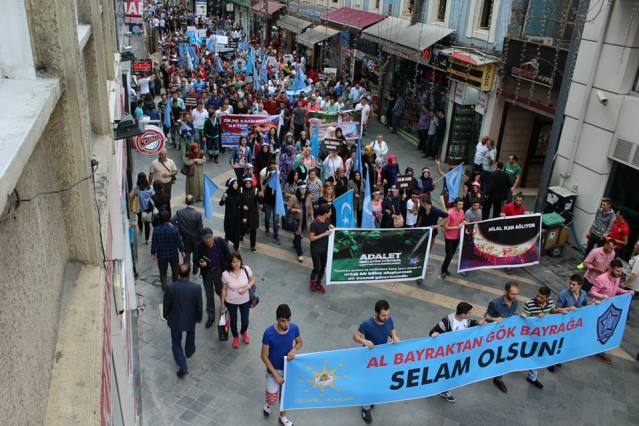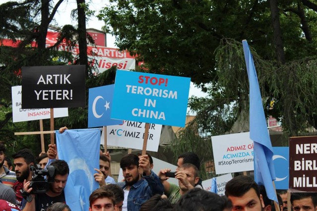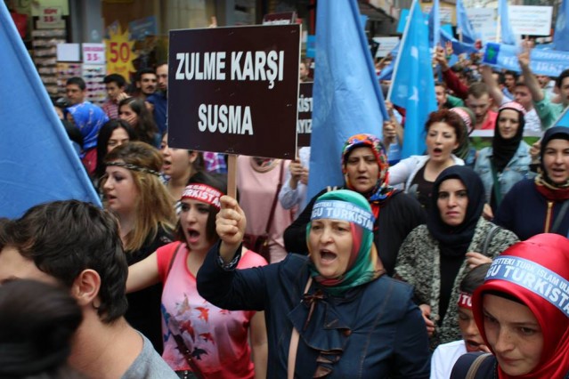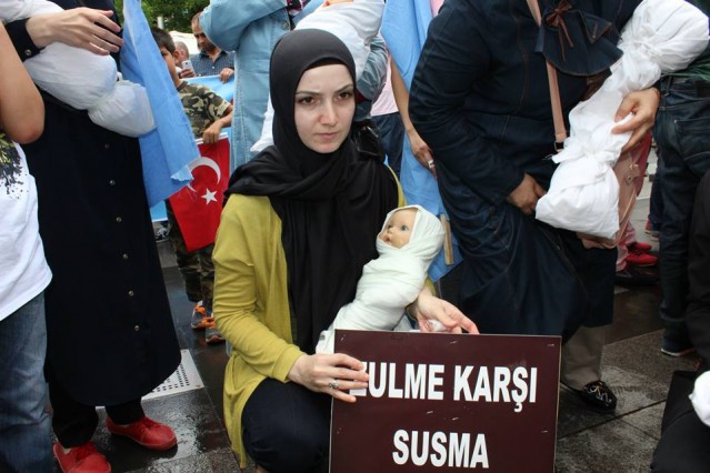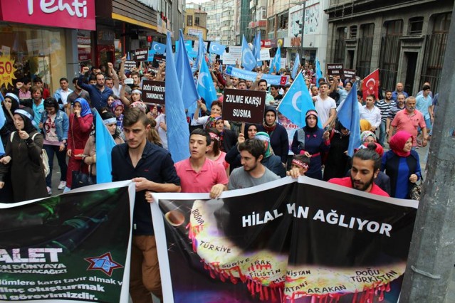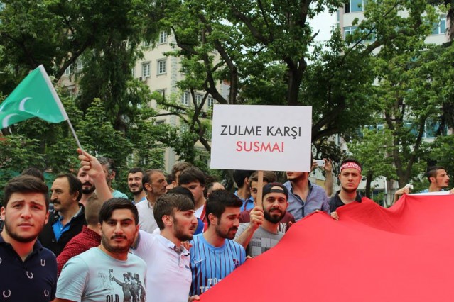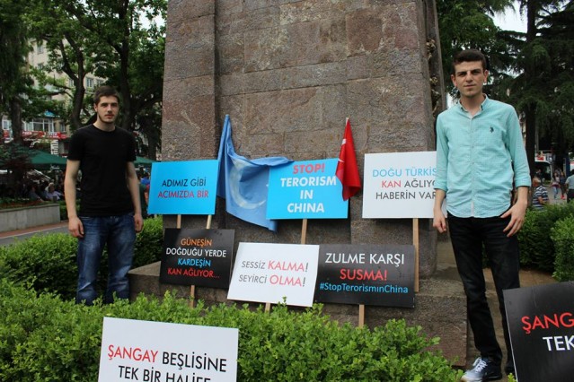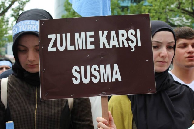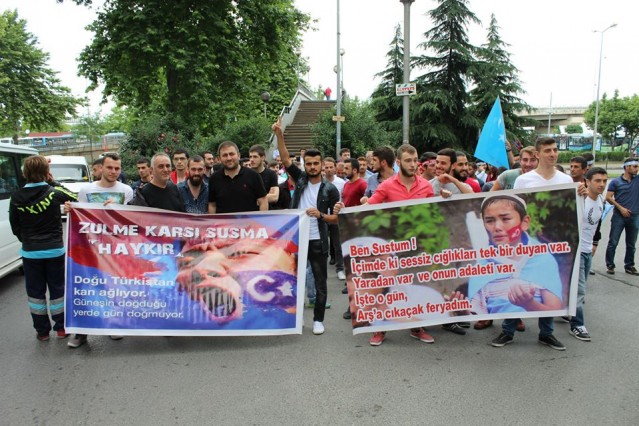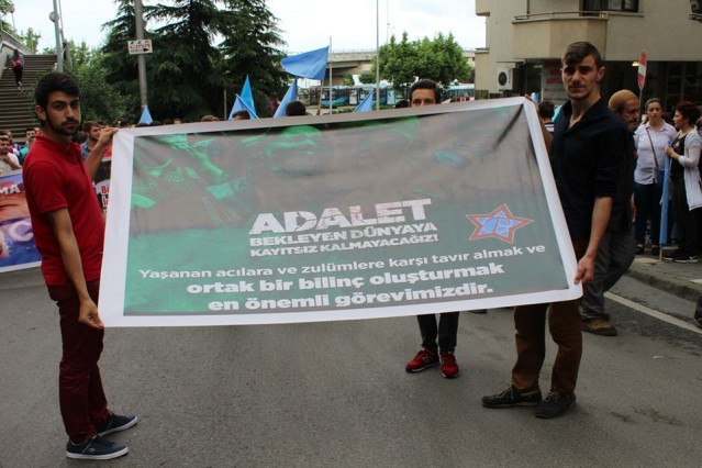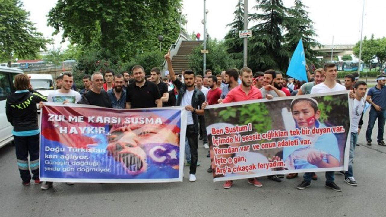 Grup adına bir açıklama yapan Adem Söğüt, "Bütün Dünyayı Doğu Türkistan zulmüne, karşı dur demeye çağırdıklarını belirterek "Komünist Çin rejimi uzun zamandan beri Sincan Uygur Özerk Bölgesi'nde yaşayan soydaşlarımız olan Müslüman Uygur Türkleri'ne baskı ve katliam politikaları yürütüyor. Bölgedeki Müslüman nüfusu azaltmak için her geçen gün şiddet politikalarını artıran Çin rejimine dünyanın egemen güçleri ve Birleşmiş Milletler herhangi bir yaptırım uygulamadığı gibi sesini dahi çıkartmıyor. Son 15 günde Çin'in resmi verilerine ve aynı zamanda bağımsız insan hakları kuruluşlarına göre yüzlerce Müslüman yaşamını yitirirken binlercesi de cezaevine konulmuştur. Yardım kuruluşlarının dahi bölgeye girmesi engellenmekte, bölgeden sağlıklı haber alınamamaktadır. Bölgenin dünya ile bağının kesilerek bu şekilde karantinaya alınması, durumun vahametiyle ilgili endişelerimizi arttırmaktadır. Çin, Doğu Türkistan'da olup bitenleri, gerçek haber ve bilgilerin üstünü zorla örtmektedir. Çin Hükümeti'nin soykırıma dönüşen uygulamaları, her yıl yüzlerce müslümanın hayatını kaybetmesiyle son buluyor. Bütün dünyayı Doğu Türkistan zulmüne, Gazze katliamlarına, Suriye vahşetine, Mısır ve Arakan'da yaşanan insanlık suçlarına karşı dur demeye çağırıyoruz" dedi.
