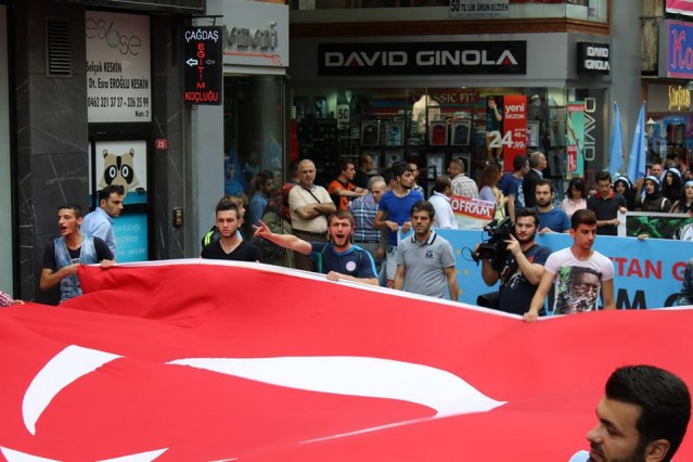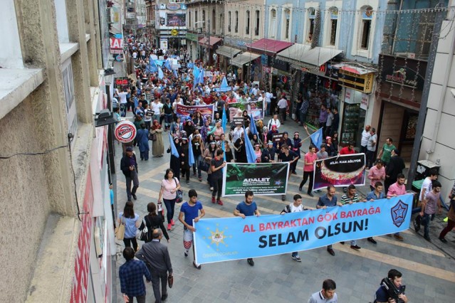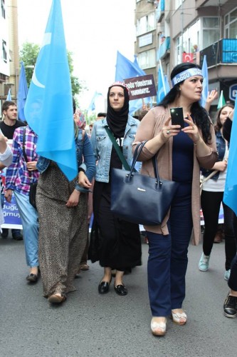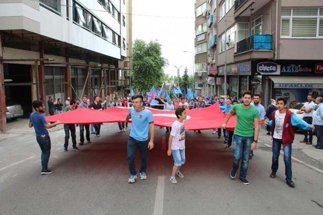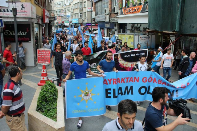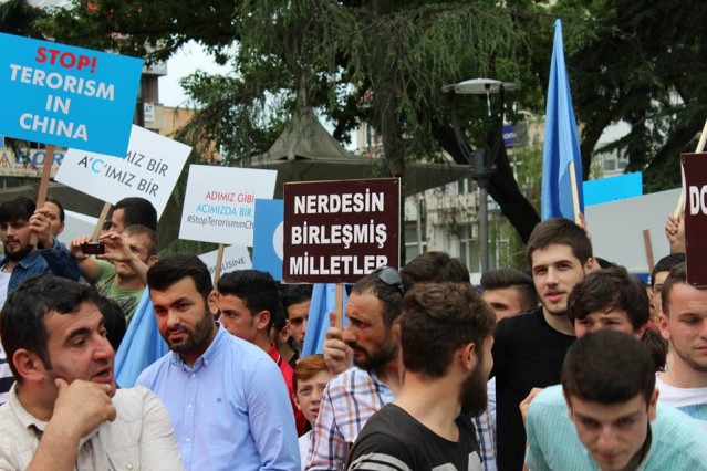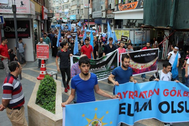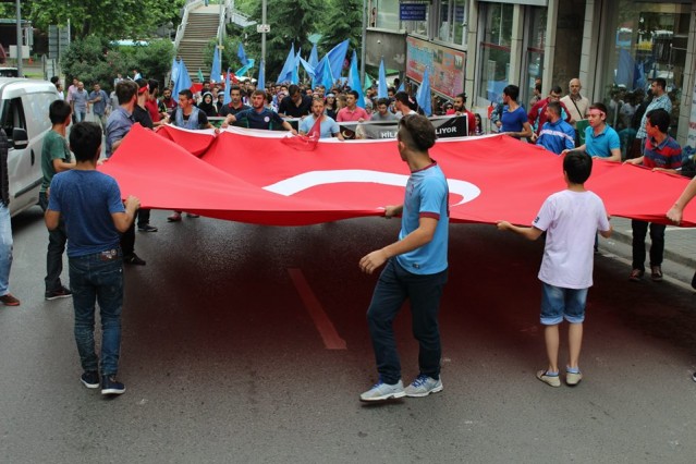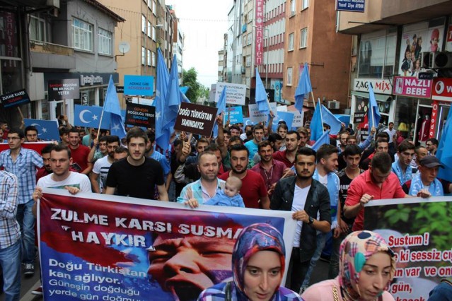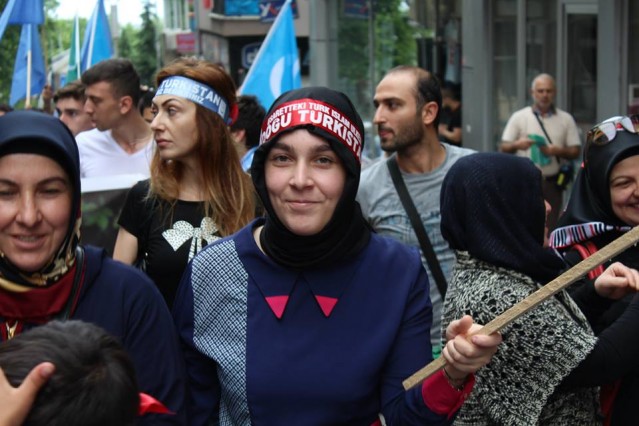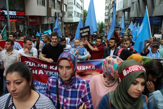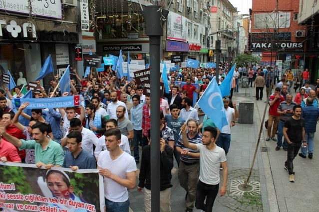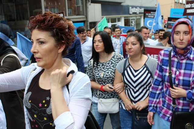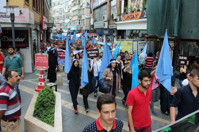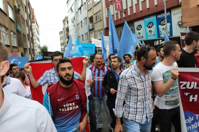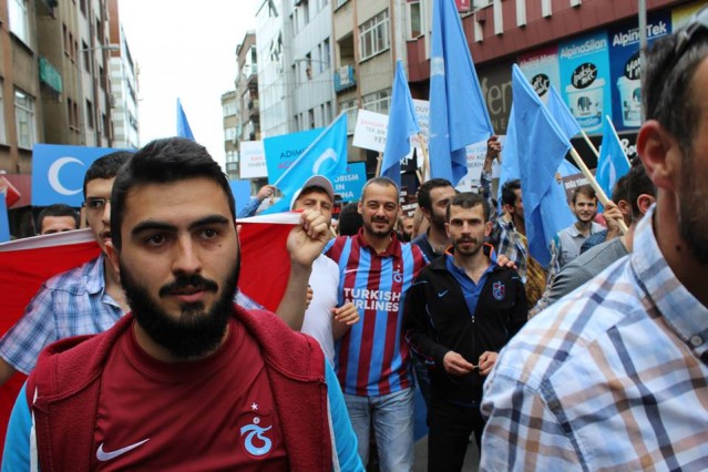 Cumhuriyet caddesindeki eski TEDAŞ binası önünden başlayan yürüyüşün ardından Atatürk Anıtı önüne gelen kalabalık grup burada Çin'in Doğu Türkistan'da uyguladığı zulmü sloganlarla protesto etti.
