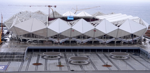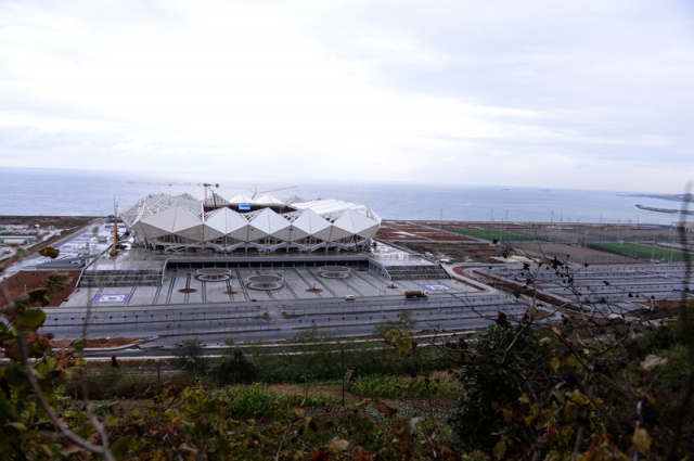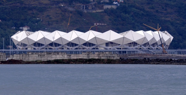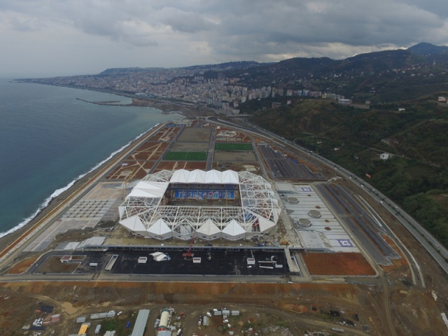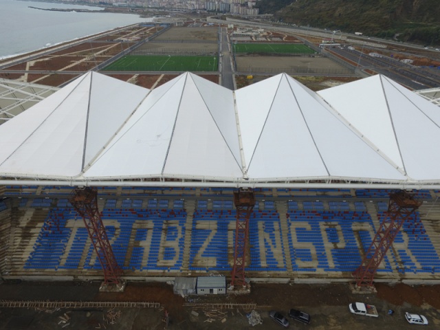 Akyazı mevkisinde deniz dolgu alanının tamamlanmasının ardından 24 Kasım 2013’te temeli atılan 41 bin seyirci kapasiteli stadın gelecek ay içerisinde tamamlanması için çalışmalar aralıksız sürdürülüyor.