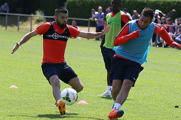 Yeni transfer MBia kampa katıldı.