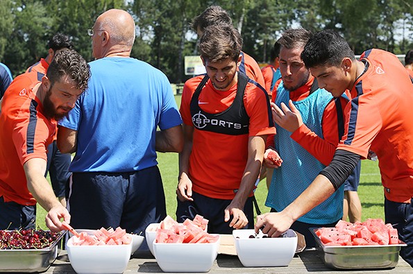 Takımımız Hollanda kampında günün ilk antrenmanını tamamladı. Taraftarlarımızın yoğun ilgi gösterdiği antrenman sonrası oyucularımız karpuz ve kiraz yediler.