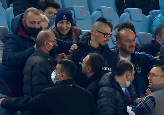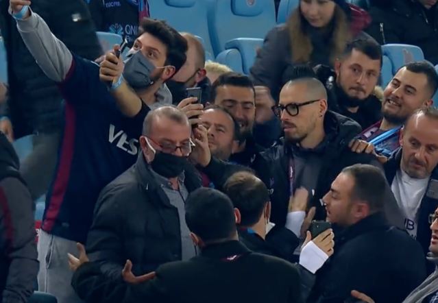 Taraftarların yanına giden Slovak oyuncu fotoğraf çektirirken sakatlığını bilen bir taraftar Hamsik'i görünce şaşkınlığını gizleyemedi.