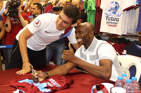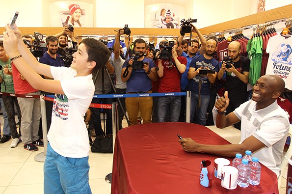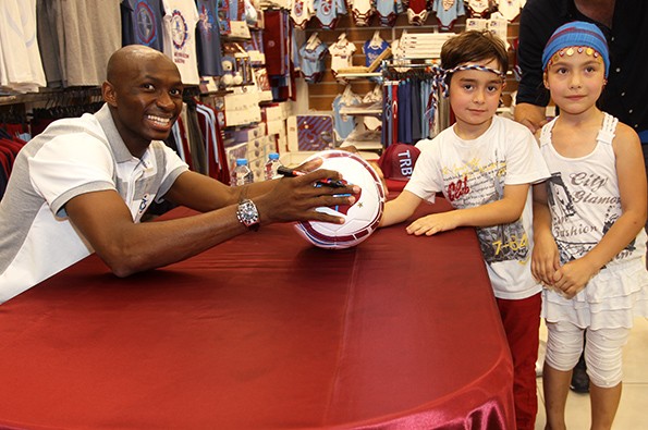 Burada yoğun ilgi gören Mbia, taraftarların lisanslı ürünlerini imzalayıp, bol bol fotoğraf çektirdi.