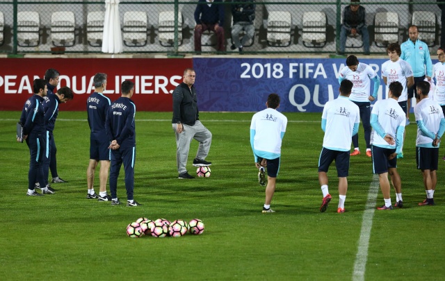İdmanın başında Türkiye Futbol Direktörü Fatih Terim, öğrencileriyle saha içerisinde kısa bir görüşme yaptı. Ay-Yıldızlı futbolcular ayaküstü yapılan toplantı sonrası basın mensuplarına toplu halde poz verdi.