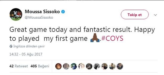 Trabzonspor'un kadrosuna katmak istediği Moussa Sissoko, Tottenham'ın Juventus ile oynadığı hazırlık maçının ardından sosyal medya hesabından paylaşımda bulundu.