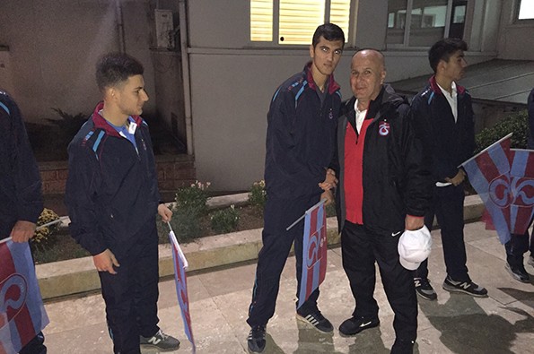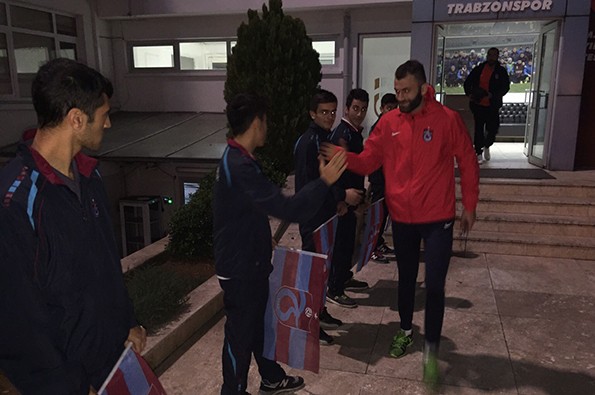 Futbolcuları, Trabzonspor'un altyapı oyuncuları bordo mavi bayraklarla uğurladı.