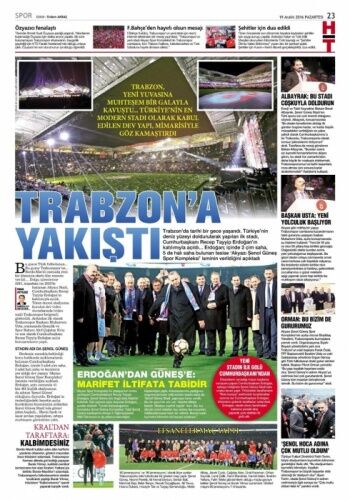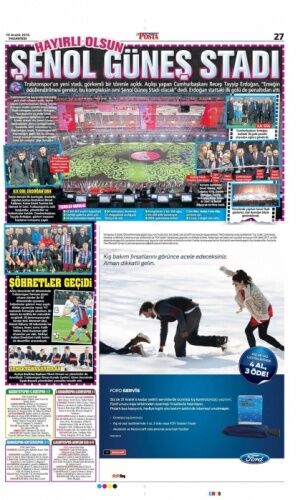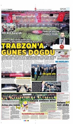 Şenol Güneş Stadı'nın Açılışı Sonrası Gazete Manşetleri