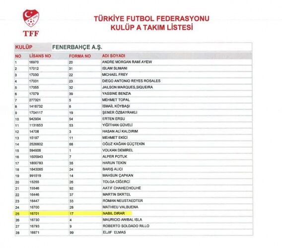 Fenerbahçe: 14 yabancı, 4 alt yapı.