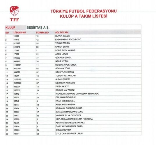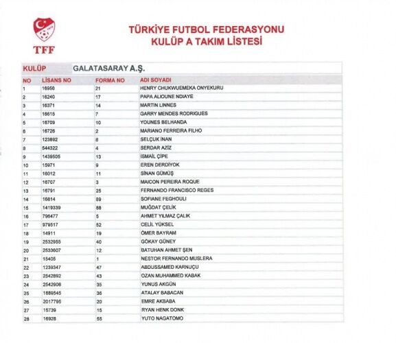 TFF'ye bildirdiği A takım listelerinde 4 büyüklerin kadrosunda bulunan yabancı oyuncular ve alt yapı oyuncuları;