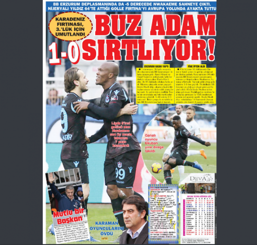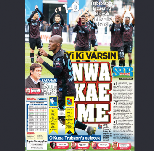 Trabzonspor'un yıldızı Nwakaeme manşetleri süsledi.