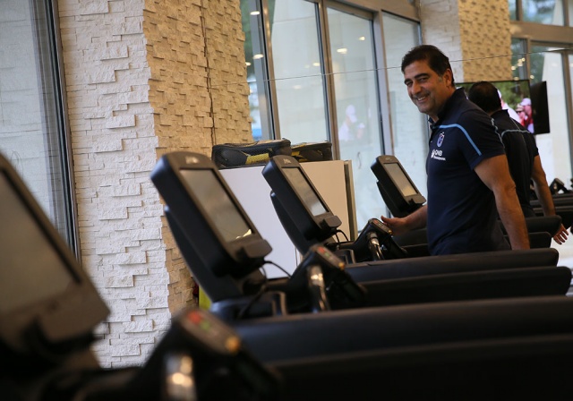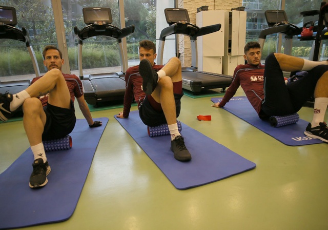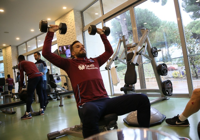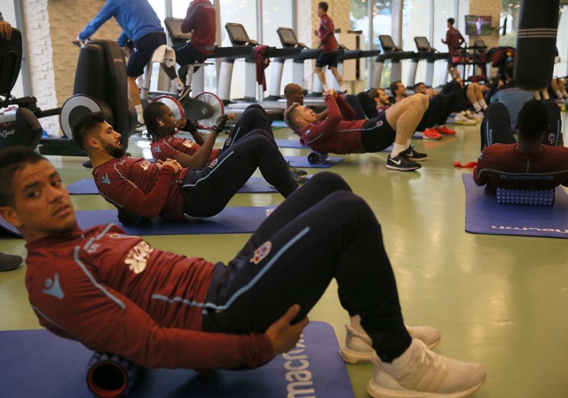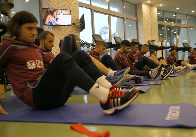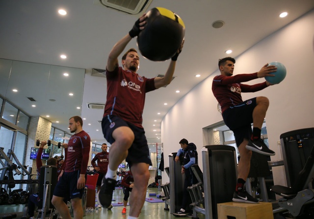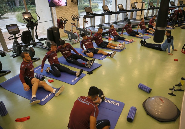 Teknik Direktör Ünal Karaman yönetiminde takımın kamp yaptığı otelin salonunda gruplar halinde yapılan antrenmanda ısınmanın ardından kuvvet çalışması gerçekleştirildi.