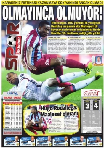 İlkhaber Gazetesi, "Olmayınca olmuyor!", "Karadeniz Fırtınası kazanmaya çok yakında ancak olmadı" başlıklarıyla haberi okuyucularına aktardı.