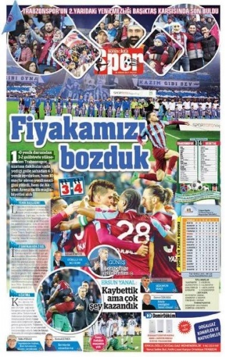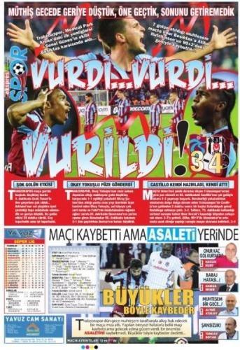 Sonnokta Gazetesi, "Fiyakamızı bozduk", "Trabzonspor’un 2’nci yarıdaki yenilmezliği Beşiktaş karşısında son buldu" başlıklarını kullandı.