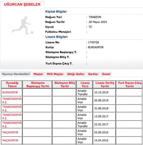 Maçkaspor'dan Trabzonspor'a transfer olan ve milli takımın da önemli isimlerinden olan Uğurcan Şebelek, Bursaspor'a gönderildi.