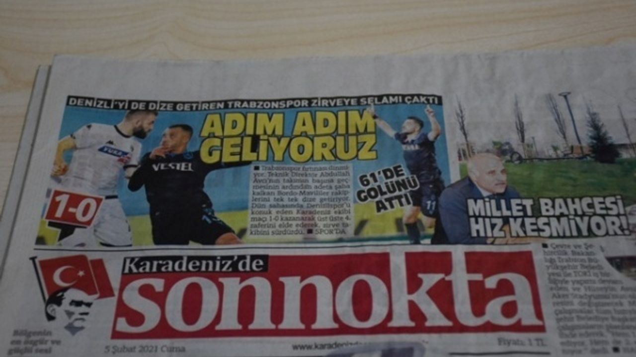 Karadeniz'den Günebakış gazetesi, Trabzonspor için ilk ve arka sayfasındaki haberde, futbolcuların gol sevinçleri fotoğraflarıyla, "Trabzon'un ayak sesleri", "Adım adım zirveye koşuyoruz" başlıklarını kullanırken, "Trabzon hakeme rağmen yendi" değerlendirmesine yer verdi.