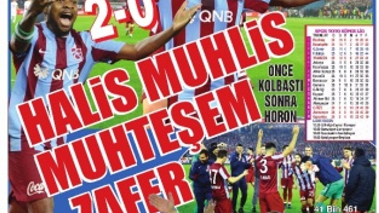 Spor Toto Süper Lig'de 25. haftanın en önemli mücadelesinde Trabzonspor, Galatasaray'ı 2-0 mağlup ederken, Trabzon yerel basını da her zaman olduğu gibi galibiyeti kendine özgü ilginç başlıklarla gördü. İşte Trabzon yerel medyasının Galatasaray galibiyeti manşetleri...