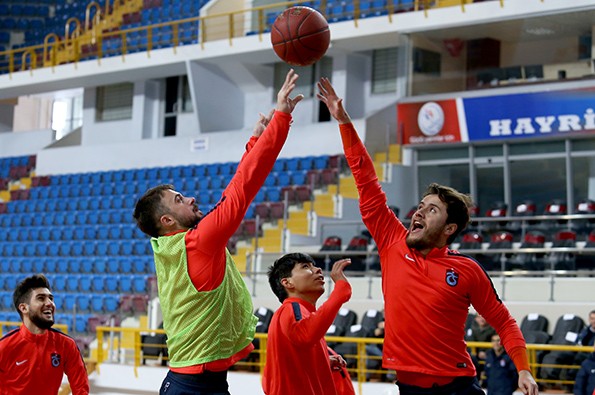 Trabzonspor, şehirde 2 gündür etkili olan şiddetli kar yağışı ve tipi nedeniyle çalışmalarını Hayri Gür Spor Salonu'nda yaptı. Bordo Mavililer basket oynayarak ter attılar.