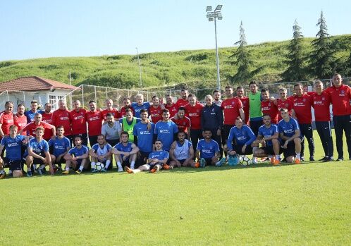 Bu arada antrenmanın ardından ise futbolcular, Kardemir Karabükspor maçı sonrası bordo-mavili takım ile yollarını ayıracak teknik direktör Rıza Çalımbay ve ekibiyle birlikte hatıra fotoğrafı çektirdi. Daha sonra futbolcular hep birlikte teknik heyeti alkışlayarak veda etti.