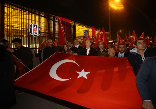 Yönetim kurulumuz ve taraftarlarımız Dolmabahçe Camii önünde buluştuktan sonra ellerinde Türk bayraklarıyla birlikte olay yerine yürüyüp patlamanın yaşandığı noktaya karanfil bıraktı.