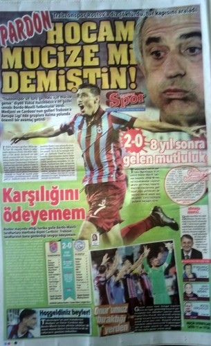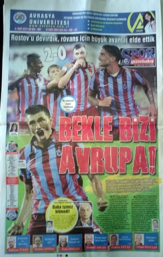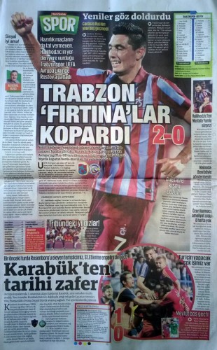 Bordo-mavililerin bu müthiş gecesinden sonra gazetelerin bugün hazırladıkları spor sayfaları ise iki yöne odaklandı. İlki Trabzonspor teknik Direktörü Vahid Halilhodzic'in maç öncesi toplantısında Rostov galibiyetini "Mucize" olarak nitelemesi ikincisi de Oscar Cardozo'nun çıktığı ilk resmi maçta gol atması oldu.