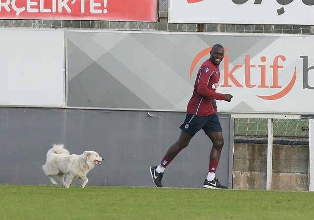 Trabzonspor'un Fenerbahçe hazırlıkları sürerken, tesislere gelen beyaz renkli köpek herkesin ilgi odağı oldu.