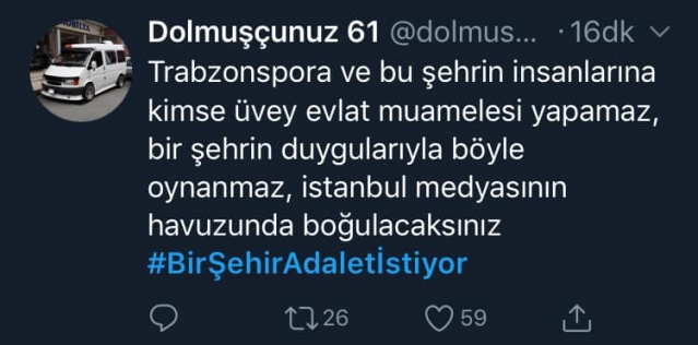 Trabzonspor taraftarı adalet aramak için sosyal medya üzerinden birlik oldu ve #BirŞehirAdaletİstiyor etiketliyle gündeme oturdu.