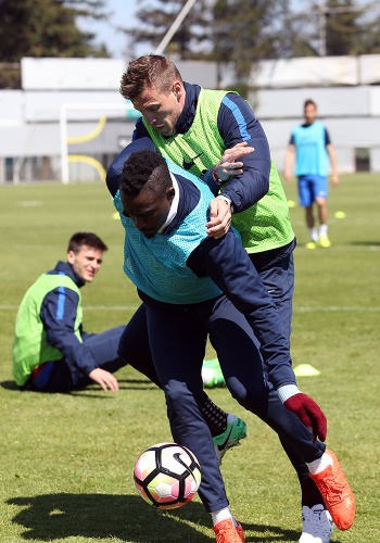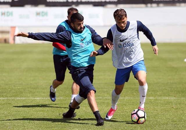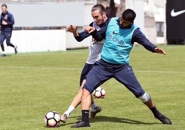 Mehmet Ali Yılmaz Tesisleri'nde teknik direktör Ersun Yanal yönetiminde ilk 20 dakikası basına açık olarak gerçekleştirilen antrenmanda, ısınma hareketlerinin ardından dar alanda oyun oynandı.