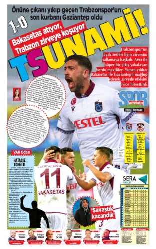 Günebakış Gazetesi, “Bakasetas atıyor, Trabzon zirveye koşuyor”, “Önüne çıkanı yıkıp geçen Trabzonspor’un son kurbanı Gaziantep oldu”, “TSunami”,