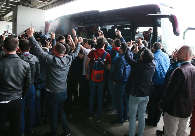 Terminal içerisinde bulunan taraftarlar oyuncular ile hatıra fotoğrafı çektirdi. Takım otobüsü ile havalimanından ayrılan kafile konaklayacağı otele hareket etti.