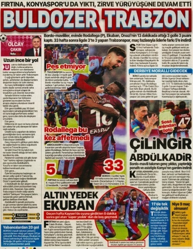 Ligin 15. haftasında Trabzonspor dün akşam Konyaspor’u kendi evinde ağırladı. Trabzonspor Rodallega, Ekuban ve Onazi’nin attığı golle Atiker Konyaspor'u 3 – 0 mağlup etti.