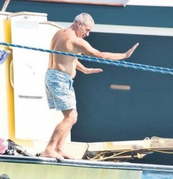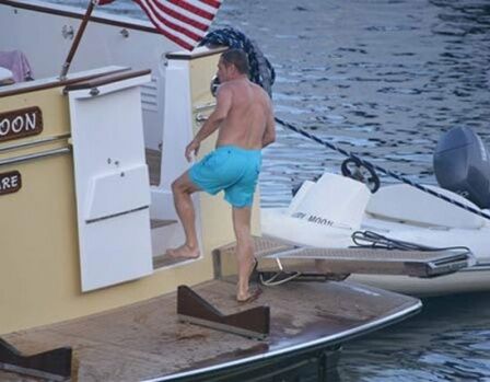 Yanal, sonrasında eşini de botla alarak tekneye geldi. Eşi ile birlikte denize giren Yanal, teknenin arka kısmında dans etti.