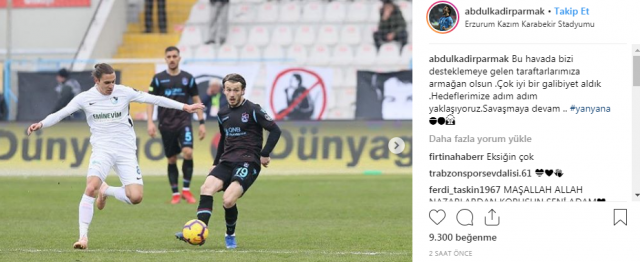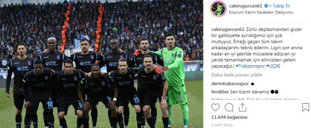 Trabzonsporlu futbolcuların Erzurumspor galibiyeti sonrası sosyal medya hesaplarından yaptıkları paylaşımları sizler için derledik.