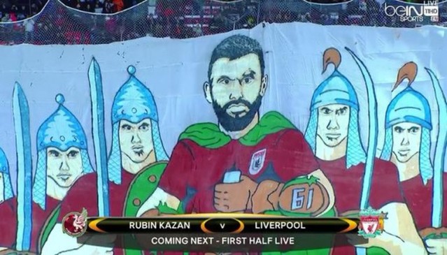 UEFA Avrupa Ligi B grubunda Rubin Kazan ile Liverpool arasında oynanan maç öncesi ev sahibi taraftarlar eski Trabzonsporlu Gökdeniz Karadeniz'in ön planda olduğu bir kareografi hazırladılar.