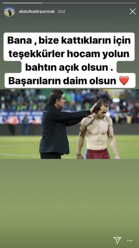Ünal Karaman’ın ayrılığı sonrası paylaşım yapan futbolculardan olan Abdulkadir Parmak,”bana, bize kattıkların için teşekkürler hocam yolun bahtın açık olsun. Başarıların daim olsun” ifadelerini kullanmıştı.