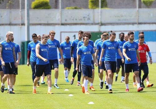 Teknik Direktör Rıza Çalımbay yönetiminde yapılan antrenmanda ısınmanın ardından pas ve taktik çalışması yapıldı.