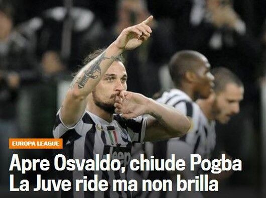 "Osvaldo ve Juve: ilk öpücük" başlığını kullanan İtalyan spor basının önde gelen gazetelerinden La Gazzetta dello Sport, siyah-beyazlı takıma ara dönemde gelen Pablo Daniel Osvaldo'nun çıktığı ilk Avrupa kupası maçında ilk golünü atmasına dikkat çekildi.