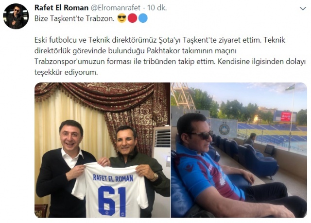 Pakhtakor takımının maçını Trabzonspor formasıyla takip eden Rafet El Roman, o anları sosyal medya hesabından paylaştı.