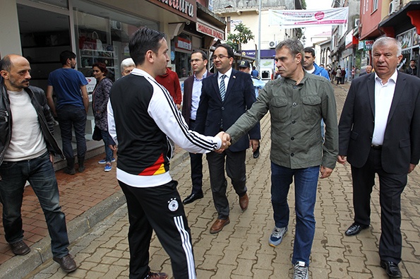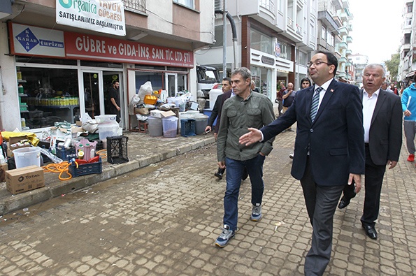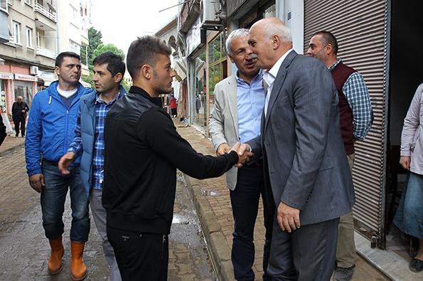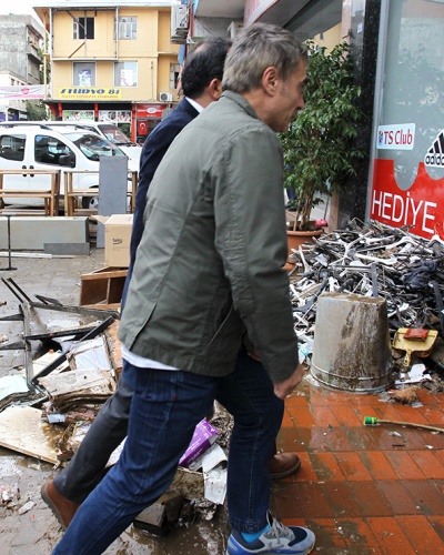 Ziyaretin ardından sel felaketi sonrası yaralarını sarmaya çalışan Beşikdüzü esnafını da ziyaret eden Asbaşkan, Teknik Direktör ve futbolcular burada vatandaşlara geçmiş olsun dileklerini iletti.