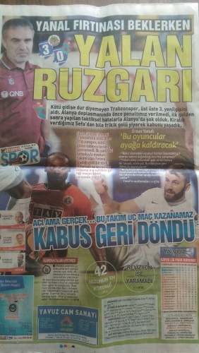 Alanyaspor deplasmanına çıkan bordo mavililer rakibine 3-0 mağlup olmaktan kurtulamadı. Trabzonspor maç boyunca organize olmakta zorluk yaşarken, savunmada yaptığı hatalarla da dikkat çekti.