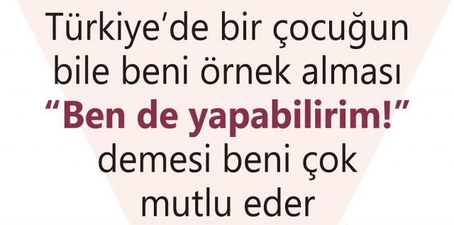 -Hayal etsinler… Hayal etmediğiniz hiçbir şey, hayatınızın gerçeği olmuyor. Ama tabii sadece hayal ederek de başarı elde edemiyor insan. Mutlaka çok çalışmak gerekiyor. Elbet, zorluklar yaşanacak. Zaman zaman başarısız da olunacak. Ama her şartta devam edebilmek, başarıya giden yolun ilk anahtarı…