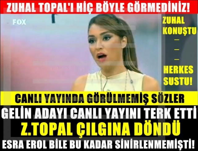 Gözyaşlarını tutmakta zorlanan gelin adayı Zuhal Topal'dan çıkmak için izin istedi. Ne olduğunu anlayamayan Zuhal Topal ise genç gelin adayına neden stüdyodan çıkmak istediğini sorarken, gelin adayı yerinden kalkarak kapıya yöneldi.