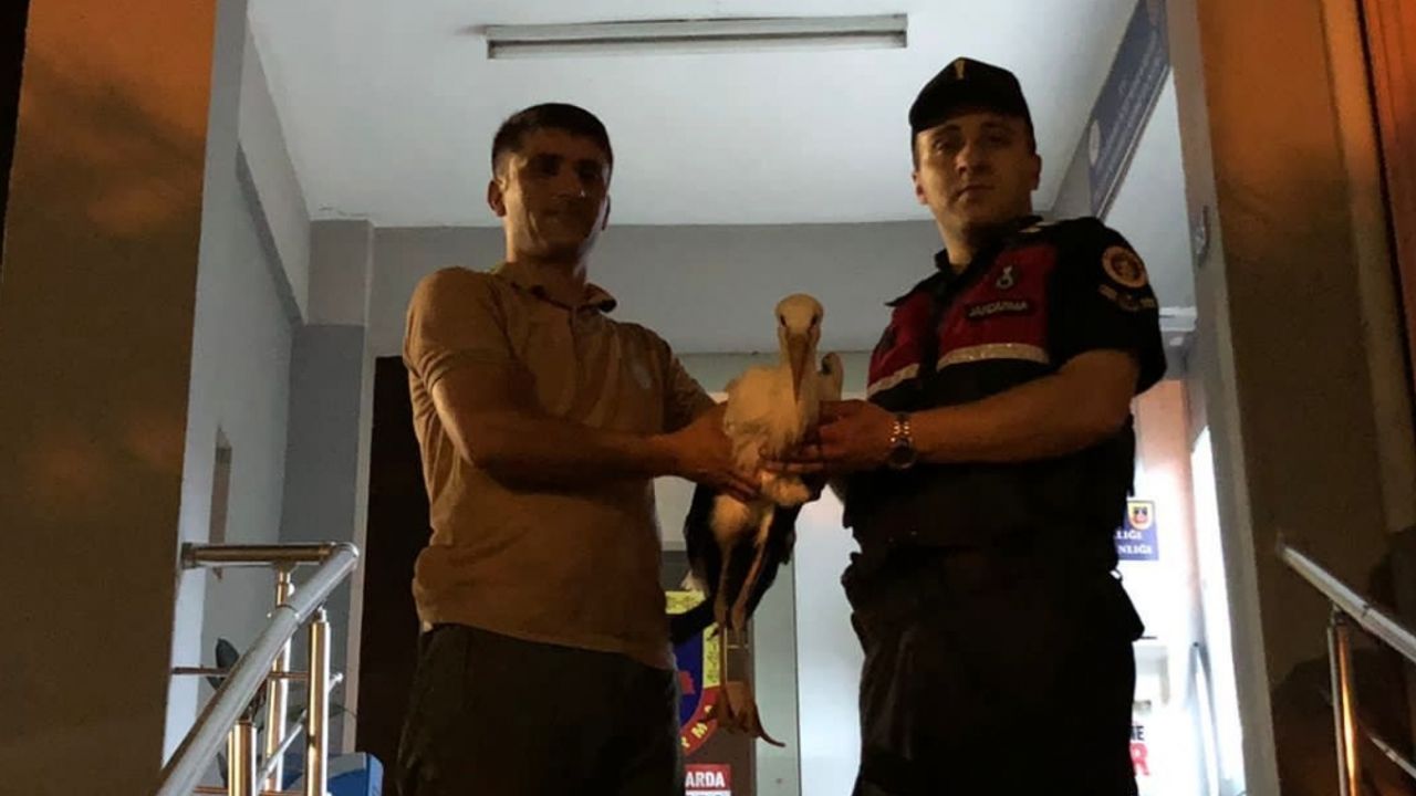 İlçenin Akpınar köyünde vatandaşlar, yolda buldukları leyleği Yağlıdere Jandarma Komutanlığına getirdi.