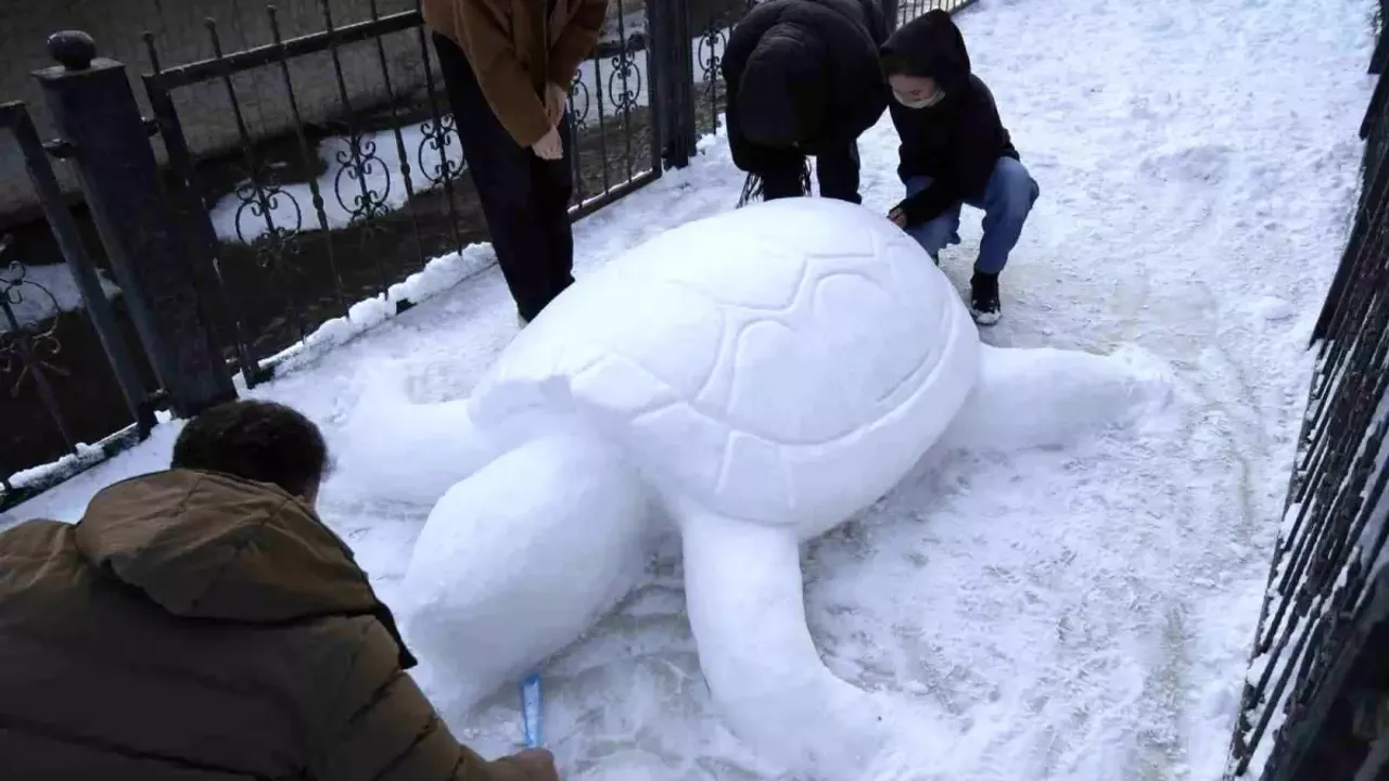 Kardan kaplumbağayı gören vatandaşlar heykelin fotoğraflarını çekerken, çalışma kısa sürede sosyal çevrede de ilgi gördü. Cihan Oral’ın karla yaptığı sanat eserleri, kışın soğuk yüzüne sıcak bir renk kattı.