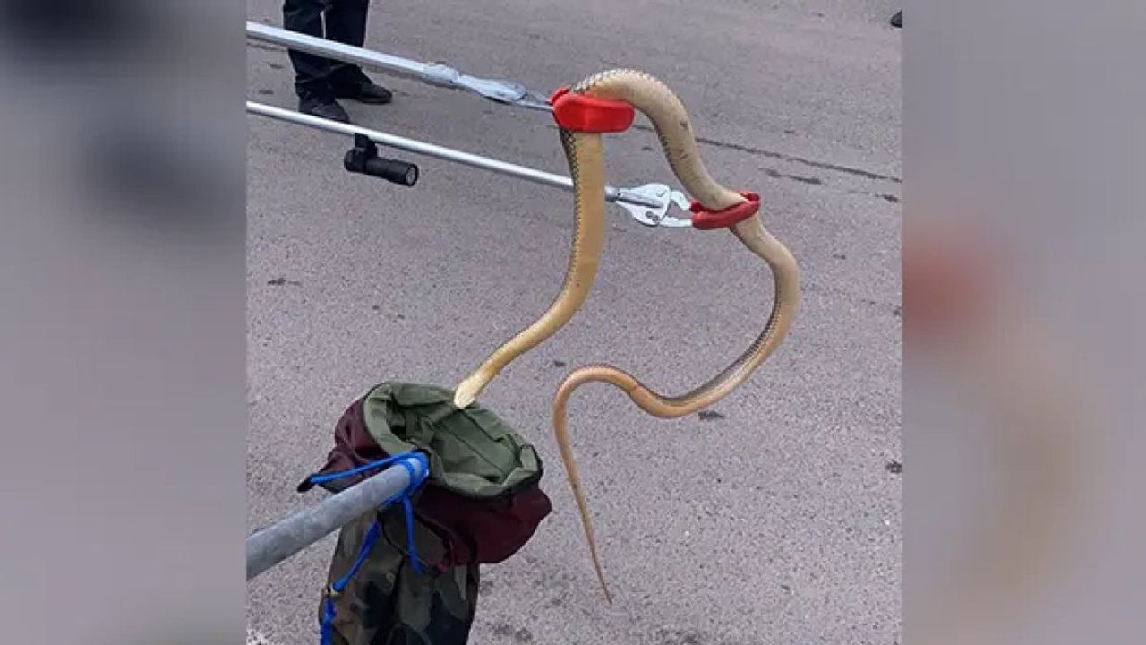 Mahalle sakinlerinin otomobilin lastik bölgesinde yılan gördüklerini bildirmesi üzerine 112 Acil Çağrı Merkezi'ne yapılan ihbarla bölgeye itfaiye ekipleri sevk edildi. Ekipler, dikkatli bir çalışmayla yılanı araç tekerinden çıkararak özel bir fileye aldı.
