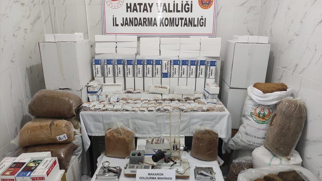 GÖRÜNTÜ DÖKÜMÜ : - Evde ele geçirilen tütün ve makaronlar Hatay'da kaçak tütün ve makaron ele geçirildi HATAY (AA) - Hatay'ın Hassa ilçesinde bir evde 250 kilogram kaçak tütün, 10 bin 220 doldurulmuş sigara ve 157 bin boş makaron ele geçirildi. İl Jandarma Komutanlığı ekipleri, sigara kaçakçılığıyla mücadele çalışmaları kapsamında Akbez Mahallesi'ndeki bir ikamete baskın yaptı. Adreste, 250 kilogram kaçak tütün, 10 bin 220 doldurulmuş sigara, 157 bin boş makaron ve 3 sigara doldurma makinesi ele geçirildi. Ev sahibi A.T. gözaltına alındı.