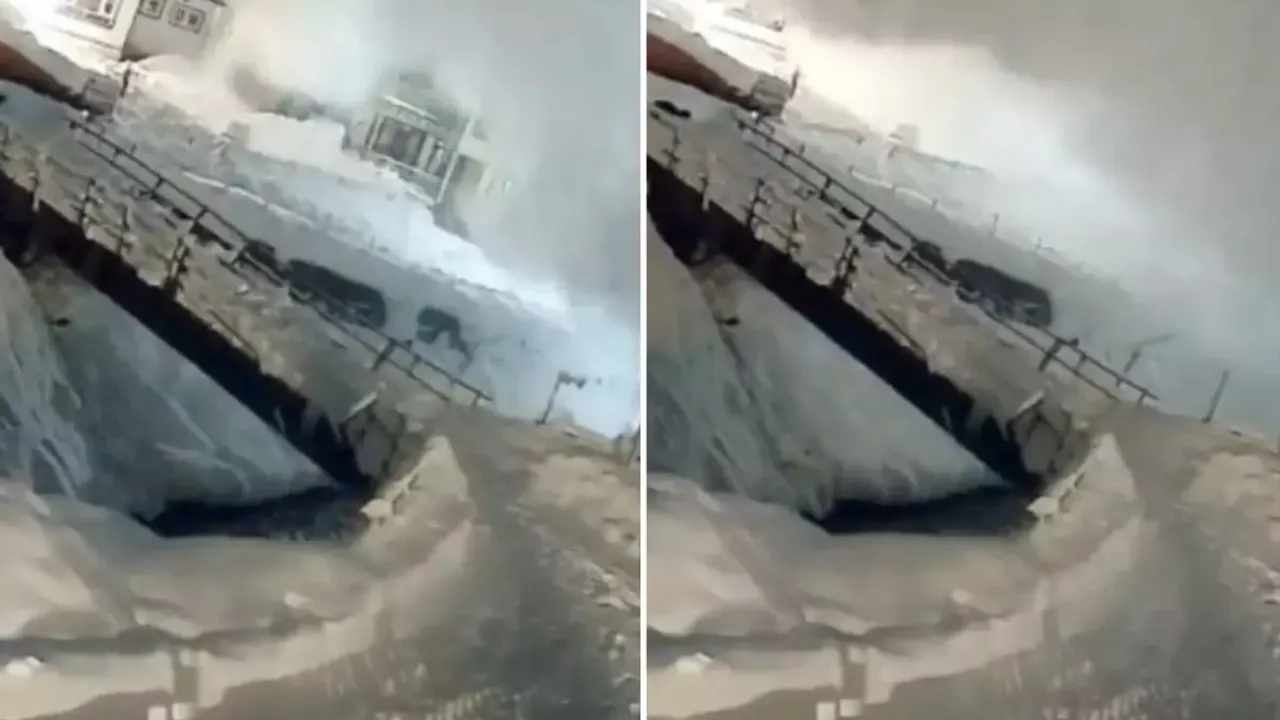 Çığın hızla yerleşim alanlarına ulaşmasıyla birlikte evler karla kaplanırken, yoğun kar bulutu çevreyi tamamen sardı. Görüntülerde kar kütlesinin büyük bir gürültüyle binalara çarptığı ve etrafı beyaz bir örtüyle kapladığı anlar net şekilde görüldü.