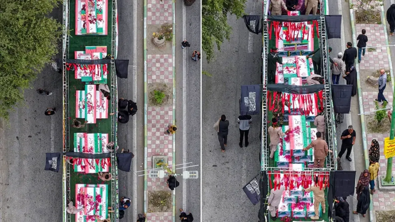 ABD ve İsrail’in İran’a yönelik saldırılarında hedef alınan Hürmüzgan eyaletindeki bir ilkokulda hayatını kaybedenler için cenaze töreni düzenlendi. İran devlet televizyonunun aktardığına göre saldırıda 153’ü öğrenci olmak üzere toplam 168 kişi yaşamını yitirdi.