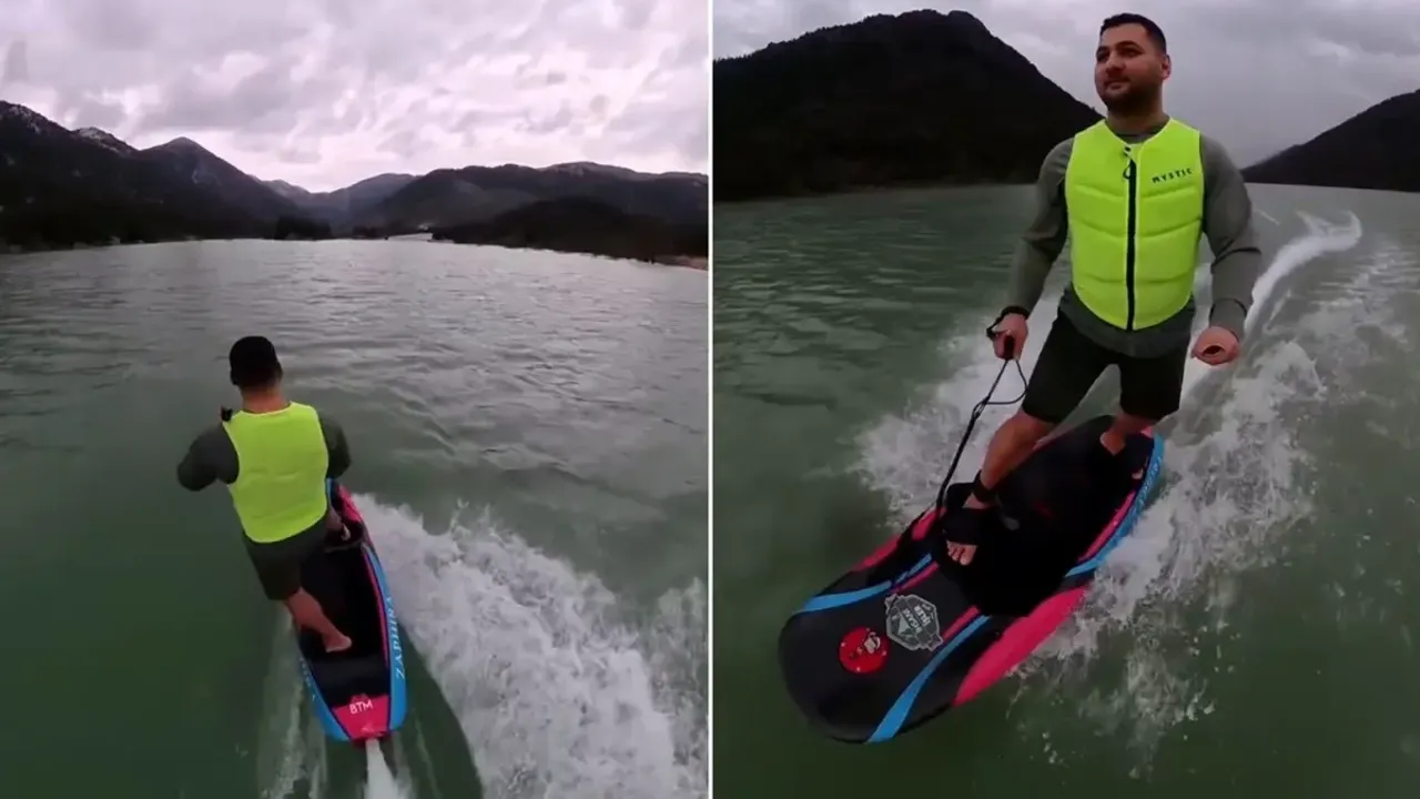 Sosyal medyada paylaşılan görüntülerde İhsan Bayık isimli bir vatandaşın, suyla kaplanan kara yolunda jetsurf yaptığı görüldü. Bayık, çektiği videoda Konya’dan Antalya istikametine doğru ilerlediğini ifade etti.