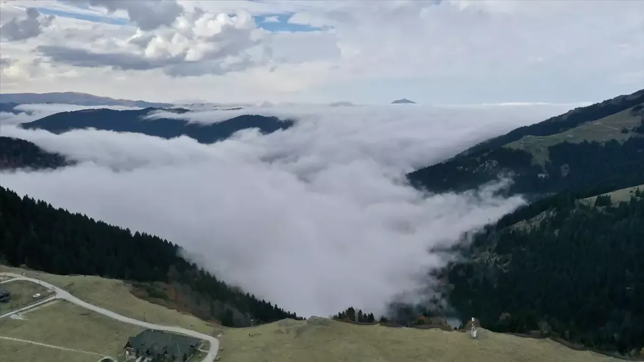 Dronla kaydedilen görüntülerde, sisin ormanların üzerine yumuşak bir örtü gibi yayılması izleyenleri büyüledi.