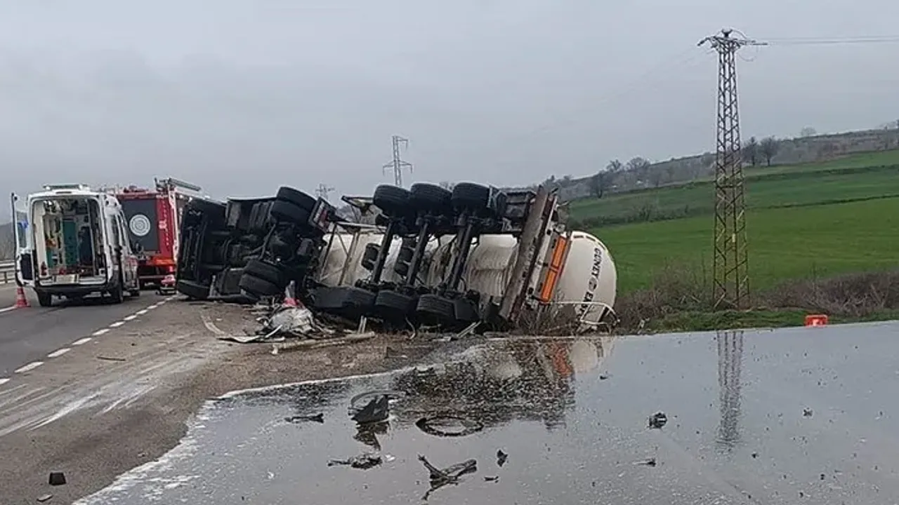 Tekirdağ’ın Malkara ilçesinde meydana gelen trafik kazası, can kaybıyla sonuçlandı. Ham ayçiçeği yağı taşıyan tanker sürücüsünün direksiyon hakimiyetini kaybetmesi sonucu devrildi.